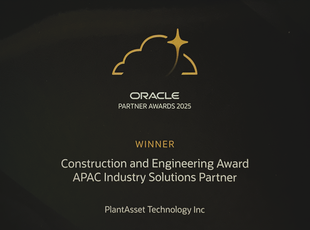 PlantAsset Technology Inc. is proud to announce that it has received the Oracle Construction & Engineering Industry Solutions Award, recognizing the company’s innovation and excellence in delivering advanced digital asset management solutions. This award highlights PlantAsset’s strong integration with Oracle technologies and its commitment to improving project and asset performance for clients worldwide.
